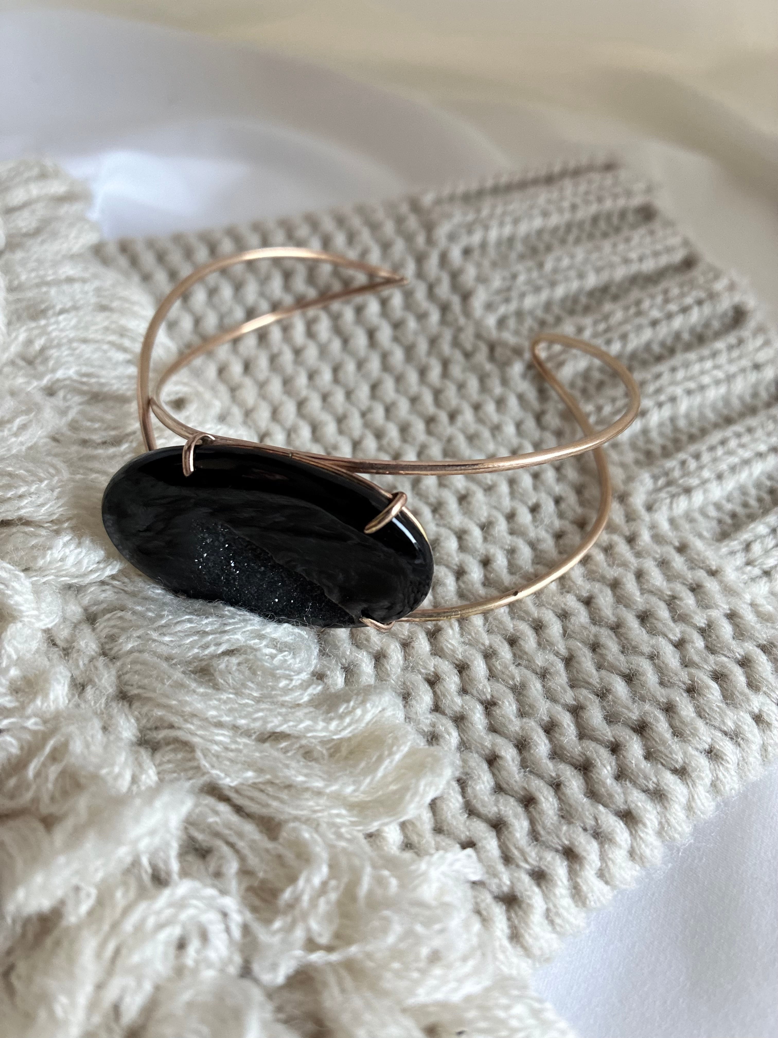 オニキスの深みのあるブラックカラーが、大人の雰囲気を演出し、手元を引き立てる一品となっております
