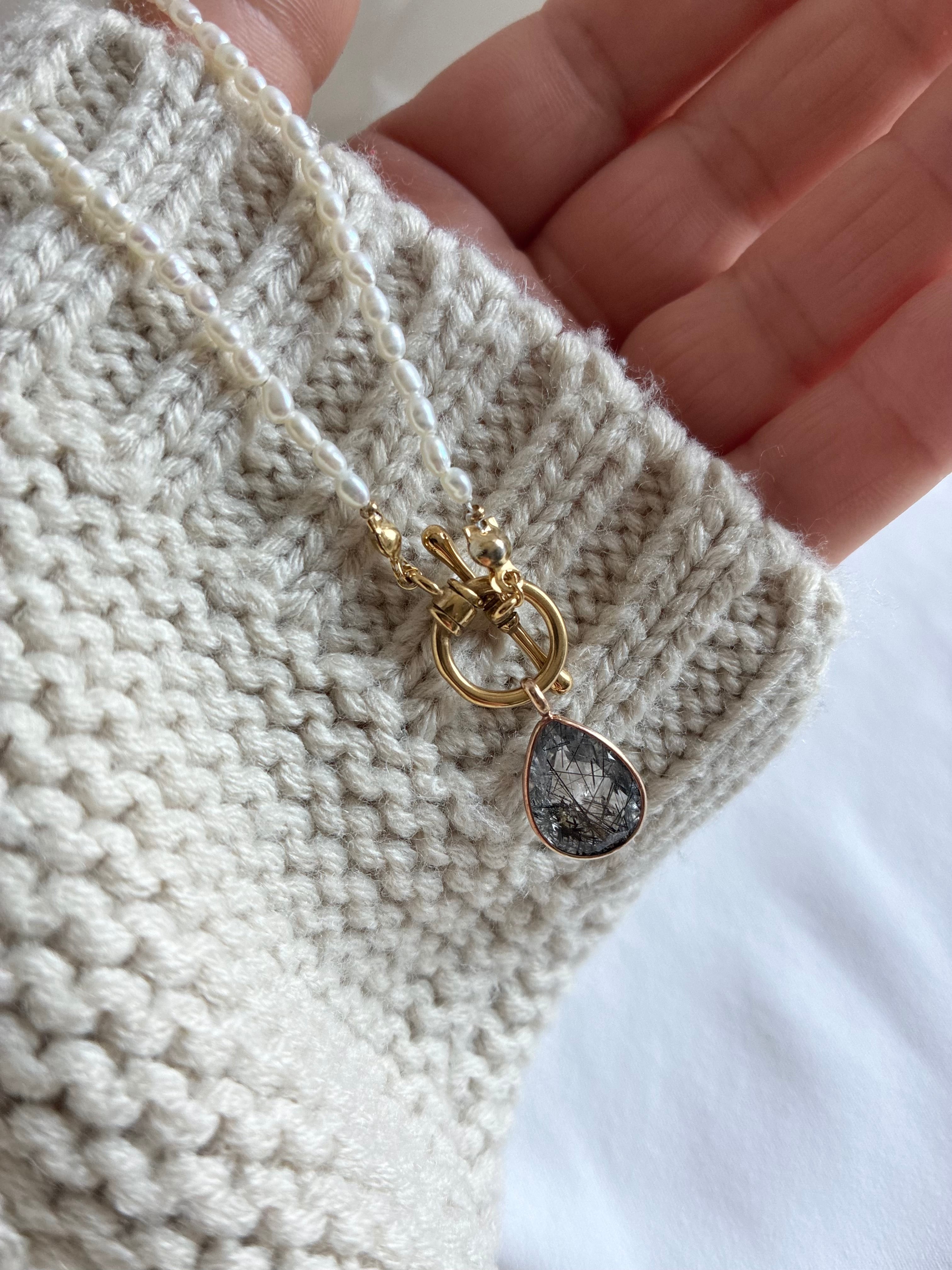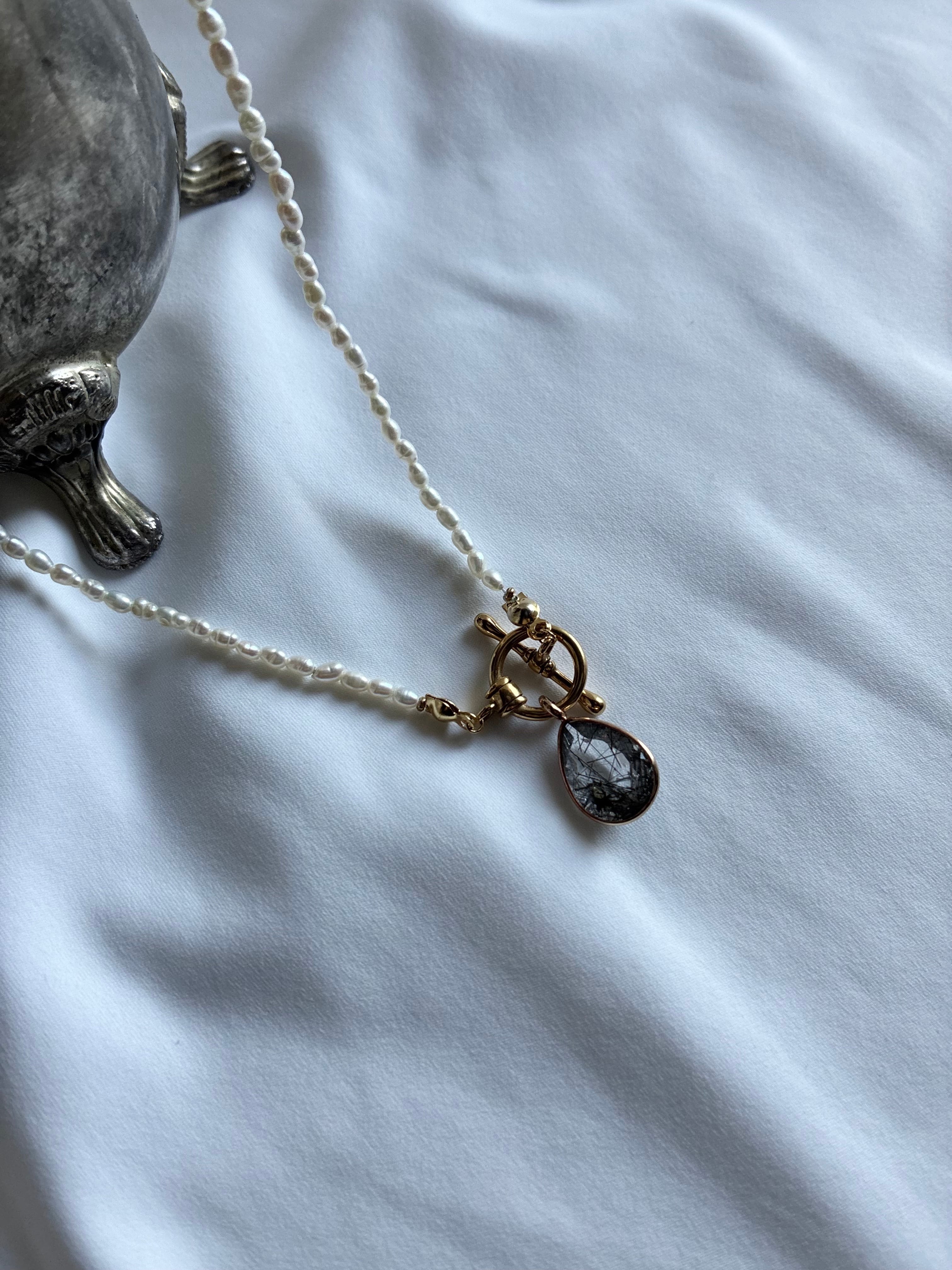□material: 天然石: ブラックトルマリン / 天然真珠2.5mm / 金属:ニッケルフリーアレルギー対応